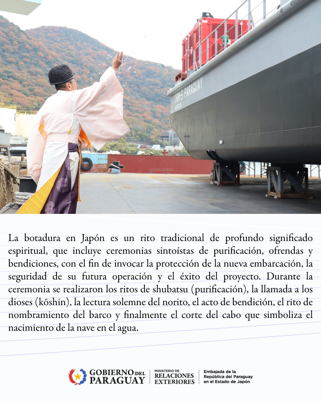 El proyecto de la botadura DRM-5 Paraguay forma parte de una asistencia por 3.203 millones de yenes, destinados a la construcción de equipo de dragado para mejorar la navegabilidad del Río Paraguay. Esta cooperación fortalece la relación bilateral y contribuye al desarrollo sostenible de sectores clave como la logística, el comercio exterior y el transporte fluvial.